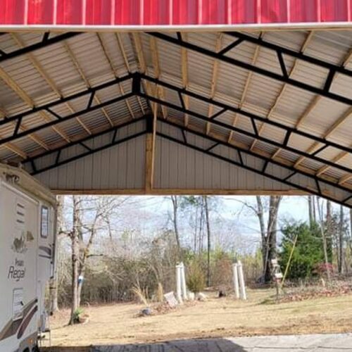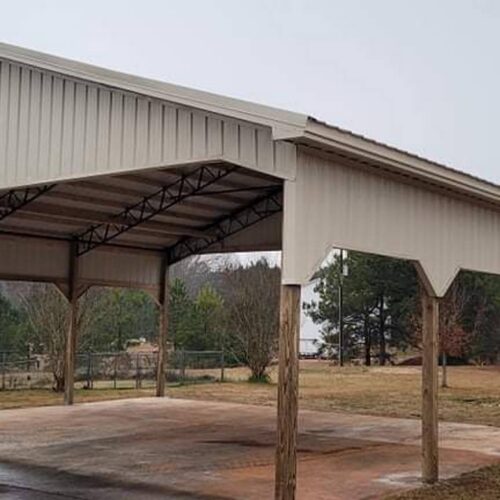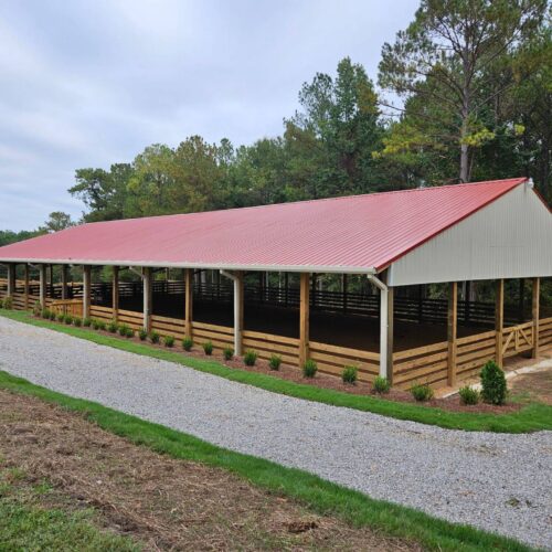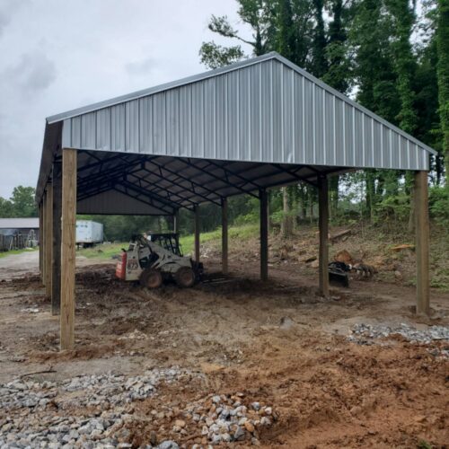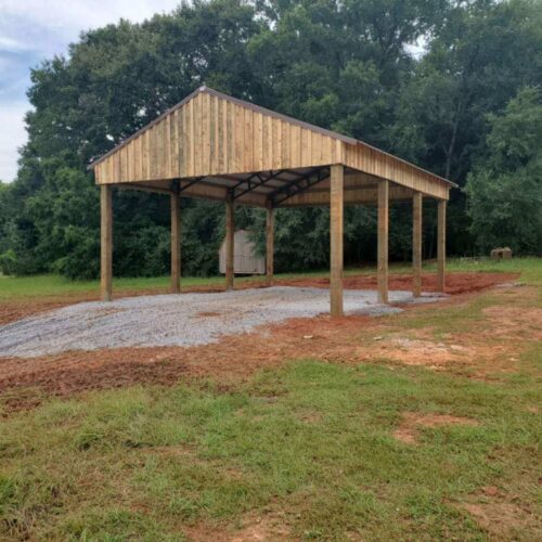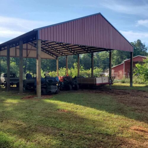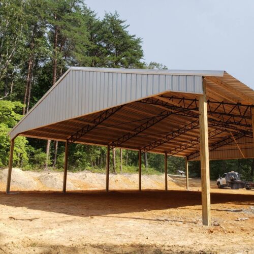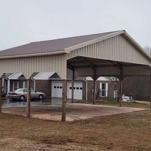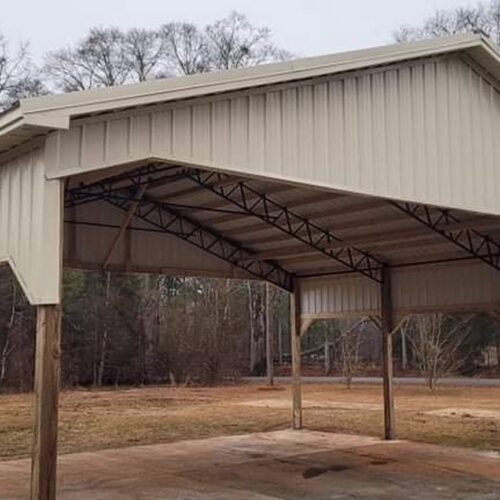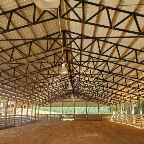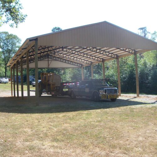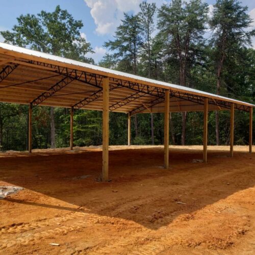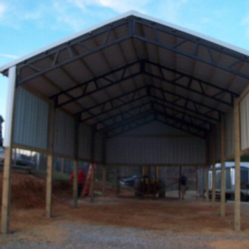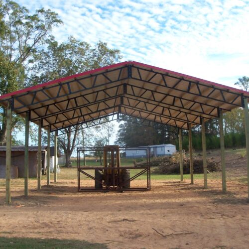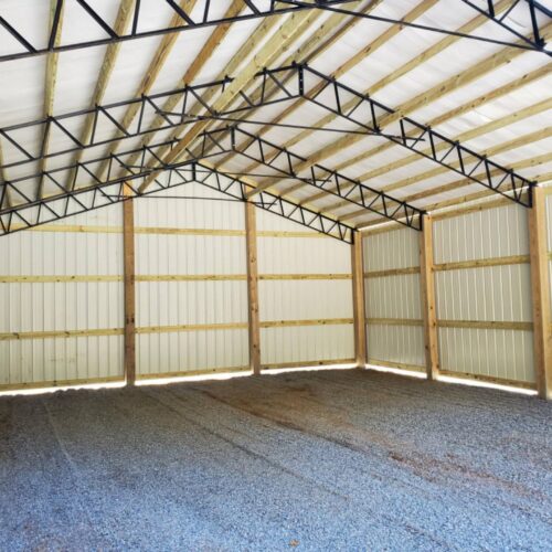 Chicken Coops Our Pole Barns built with 8×8 posts and 2×3 tubing trusses (built by us). Posts are set in the ground 4ft deep concreted in place. Posts are on 10ft centers, side height is 10ft. Call us for a FREE quote today!