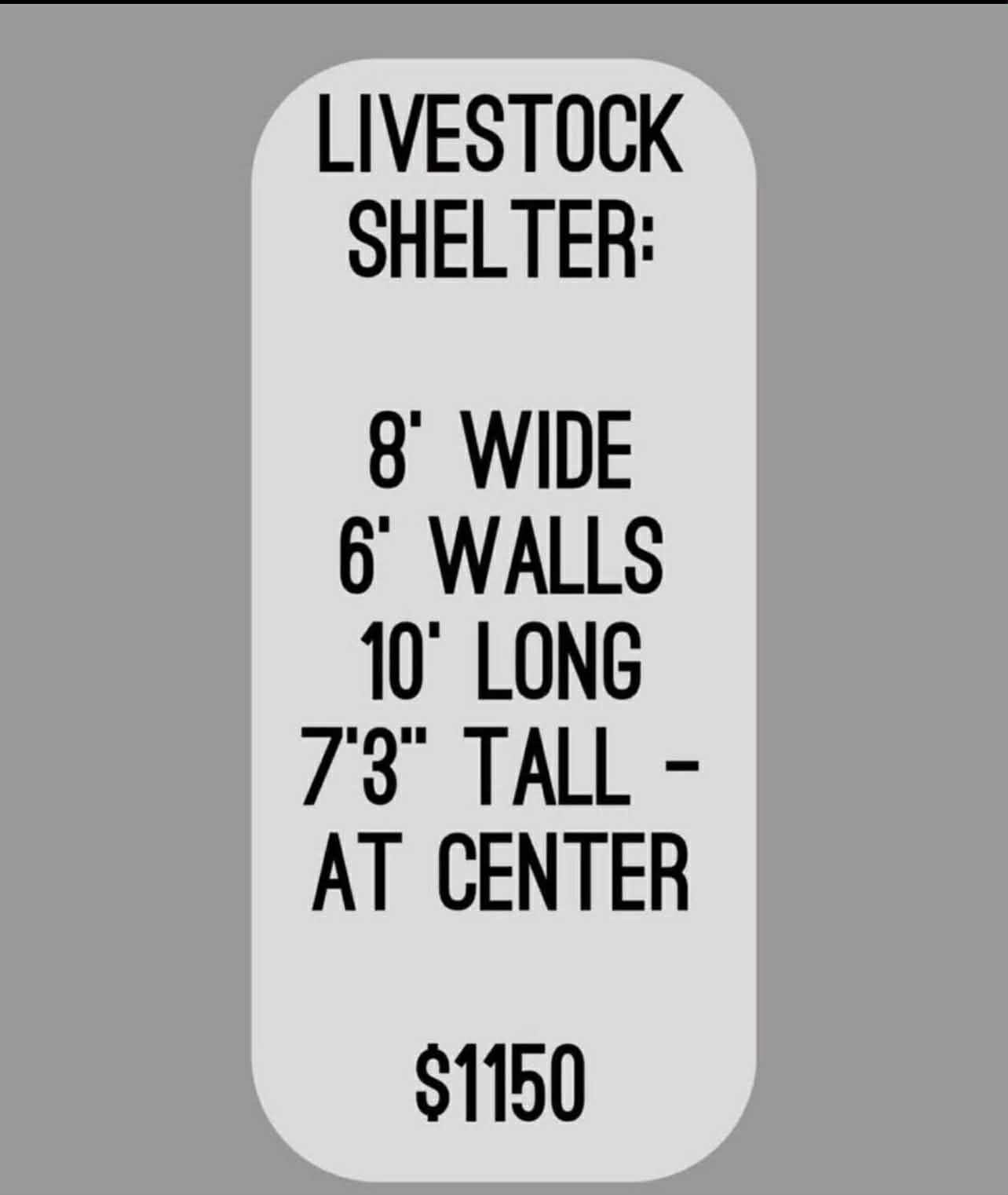 Perfect option for all your farm animal needs. Goats, sheep, donkeys,pigs,small cows, small horses and donkeys. Give your animals a covered area to go when its sunny, raining, windy, or just when they want to relax in there “safe place”.