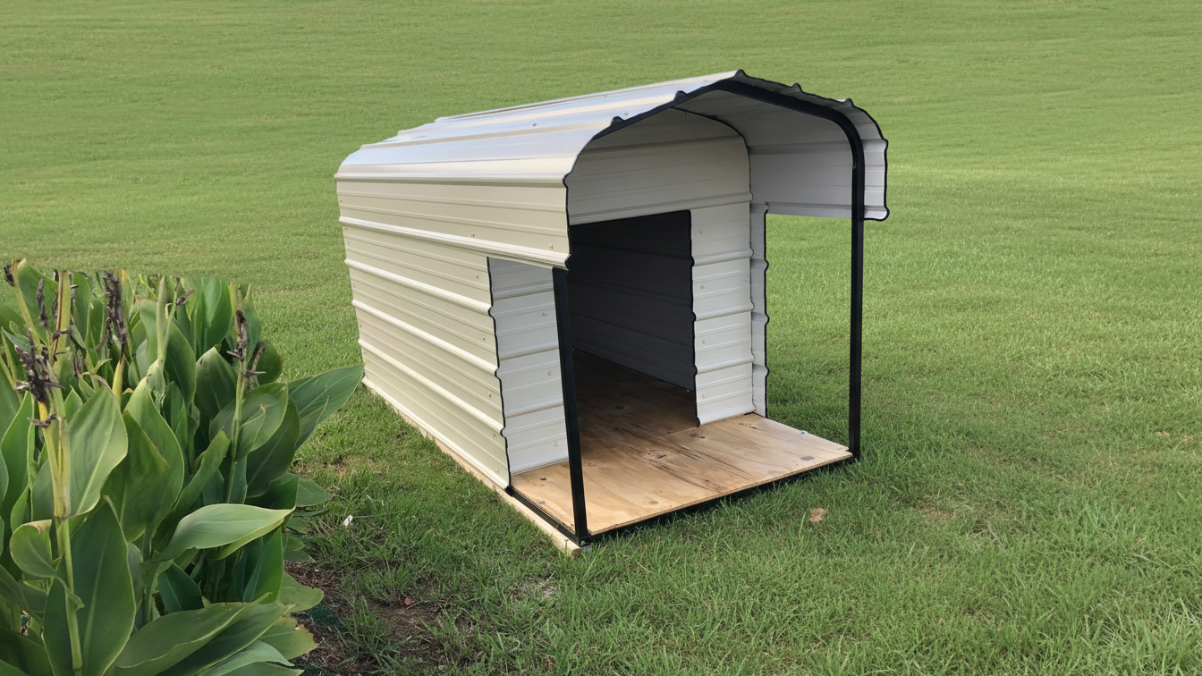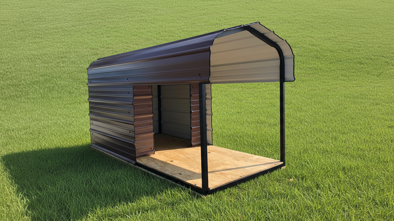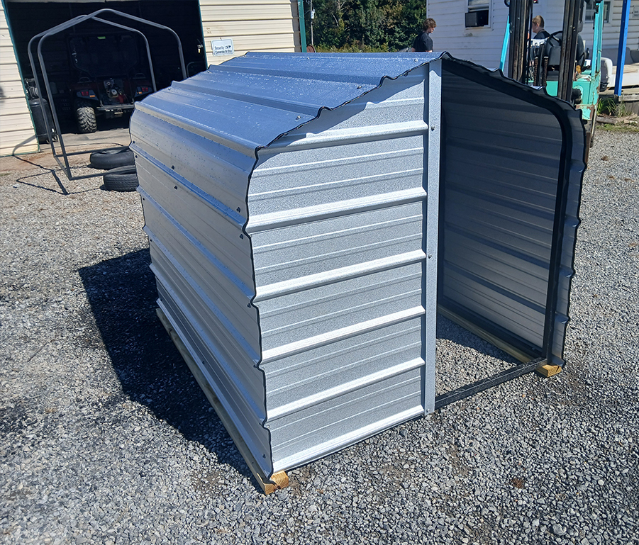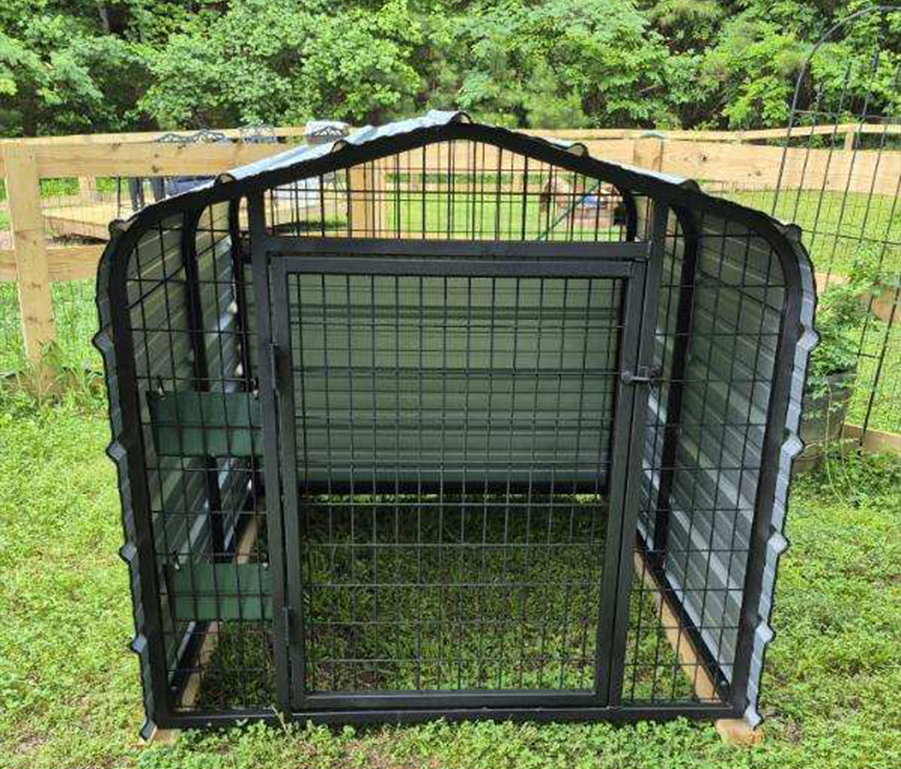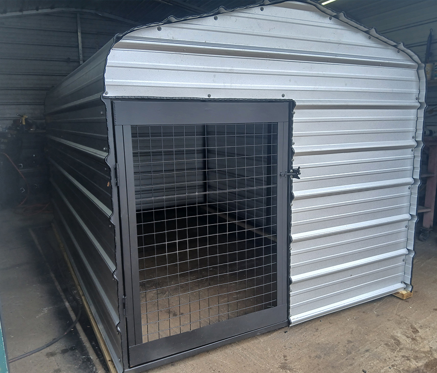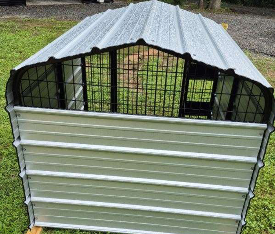 Ag-Panel metal siding– 1 1/4 x 1 1/4 Steel tube frame–2×4 Treated Base