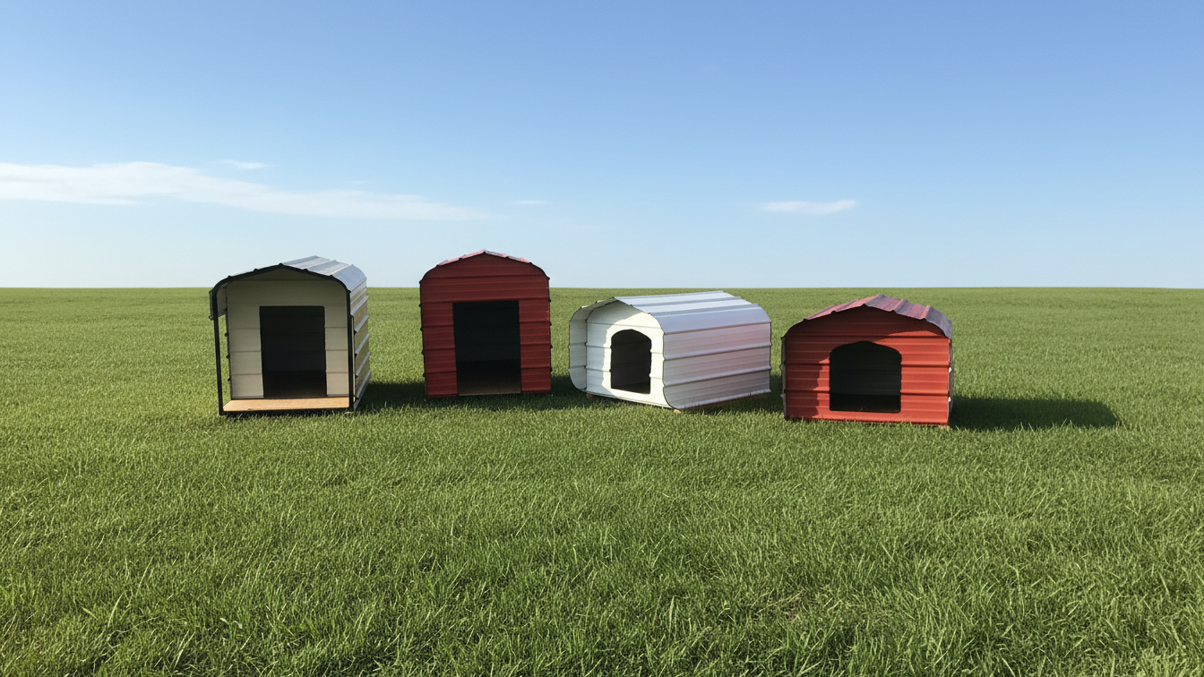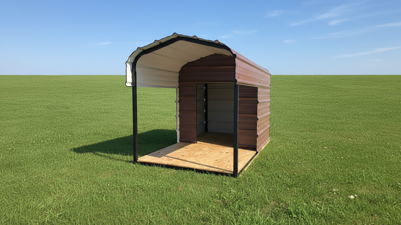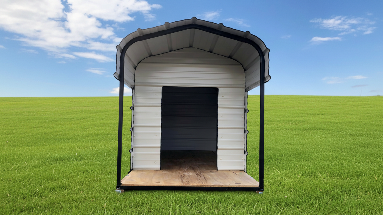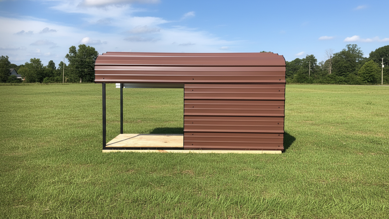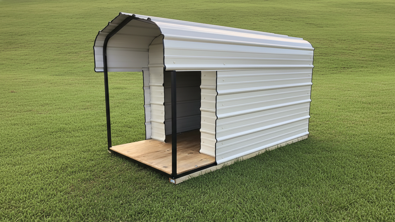 Ag-Panel metal siding– 1 1/4 x 1 1/4 Steel tube frame–2×4 Treated Base