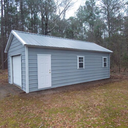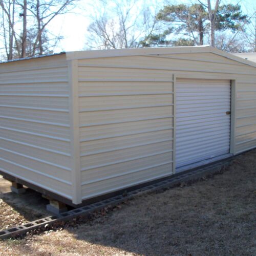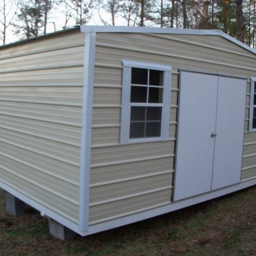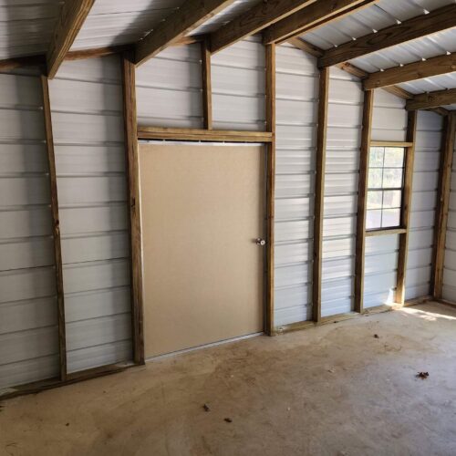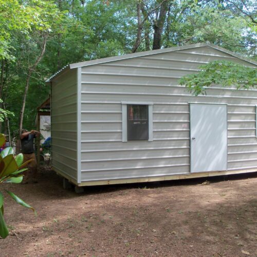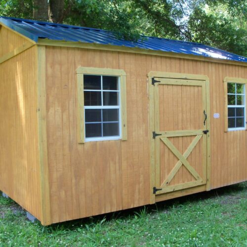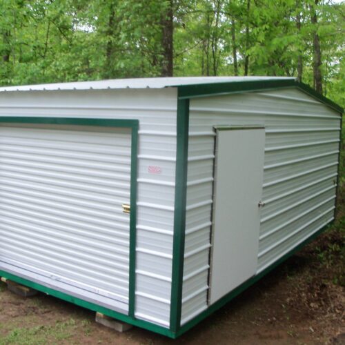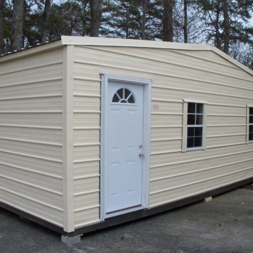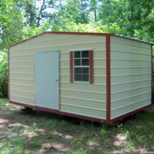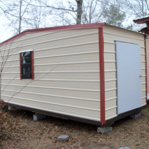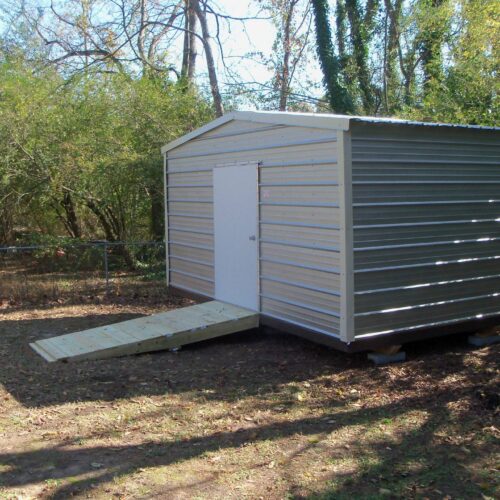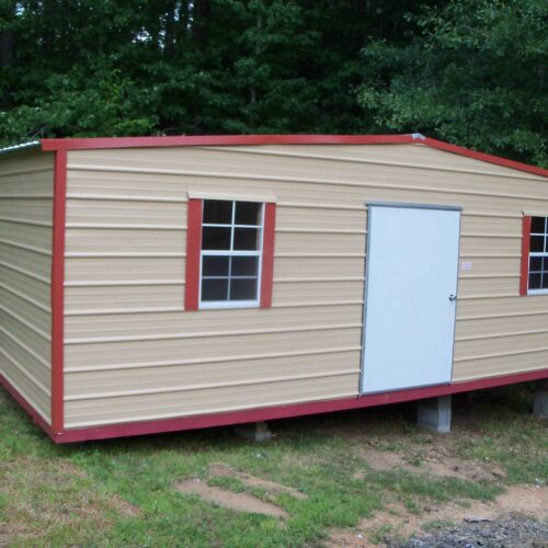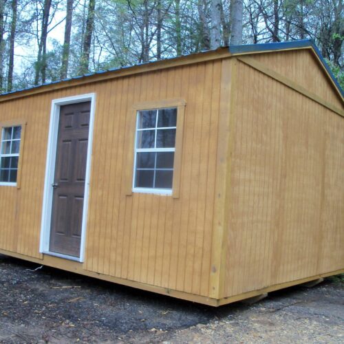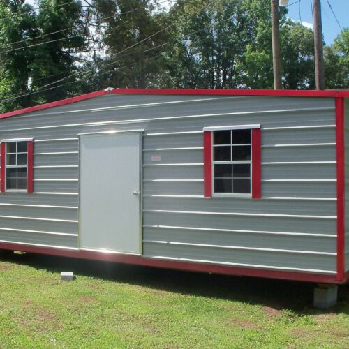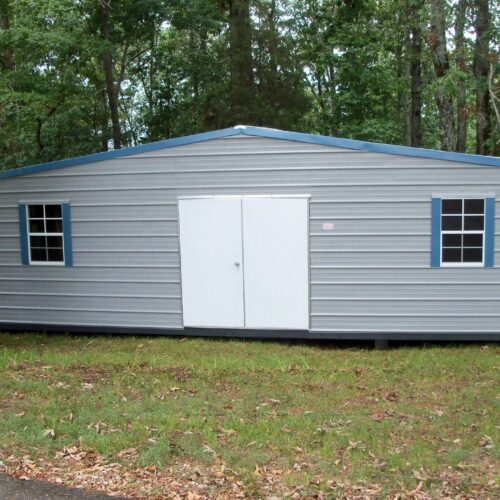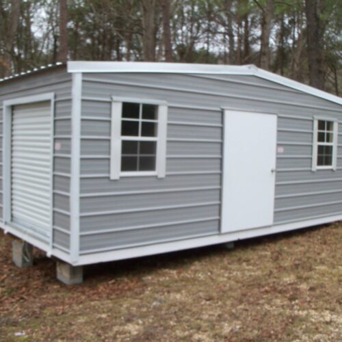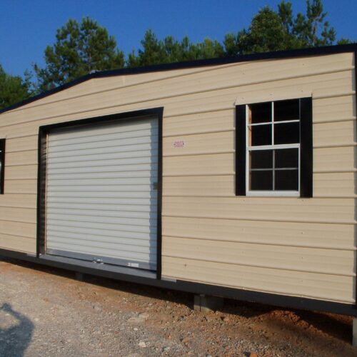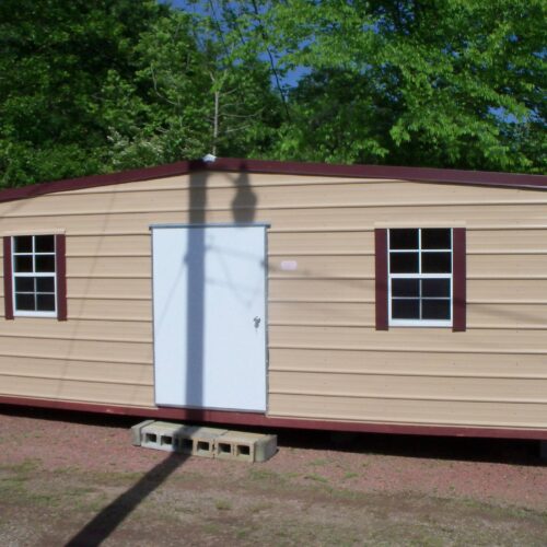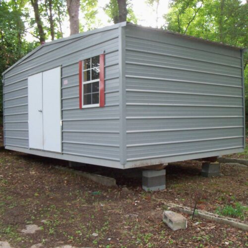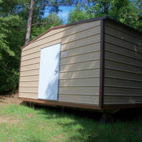Our portable buildings are built with pressure-treated 4×6 beams for runners, pressure-treated 2×6’s floor joists on 24in centers, the floor is 3/4in tongue and groove plywood, walls are 2×4’s on 24in centers, the roof is 2×6’s on 24in centers. Metal is used for roof and sides is 29 gauge metal with a 40 warranty. Ideal for anything!